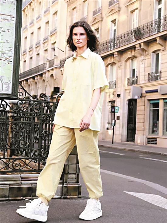 衬衫套装今季流行度也很高,棉麻、丝质衬衫套装让身体感受舒适放松,但比较容易穿出“睡衣感”,建议搭配精致感较强的配饰,两者碰撞能中和造型的随性感。