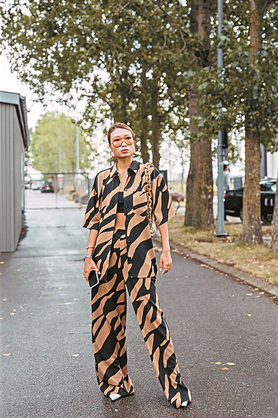 ▶宽阔的西装套装比修身款更受欢迎,也适合日常出行,超短内搭今年更流行。