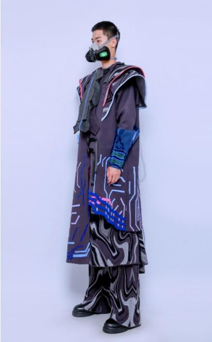 科技创新深刻地改变着人类生活方式,数字化、智能化、多维化是我们对未来时尚产业发展的探索。年轻学子将服饰语言与新科技、新面料结合,聚焦“人与环境”共生的设计语境,探索人类在数字环境中的多重身份表达,同时通过CLO 3D数字虚拟技术拓展了时尚视觉和沉浸的边界,构建出以虚化实,以实载虚的数字时尚设计。