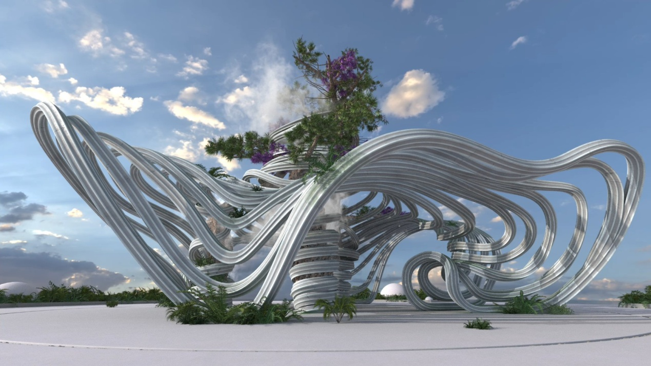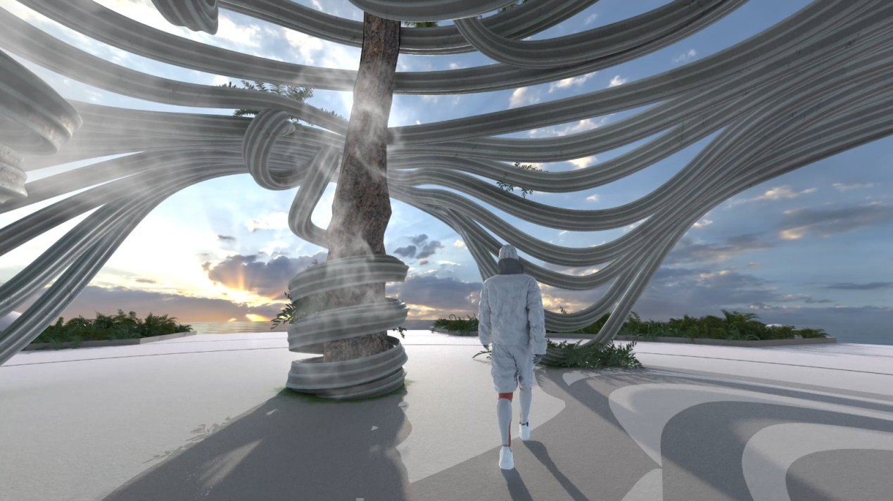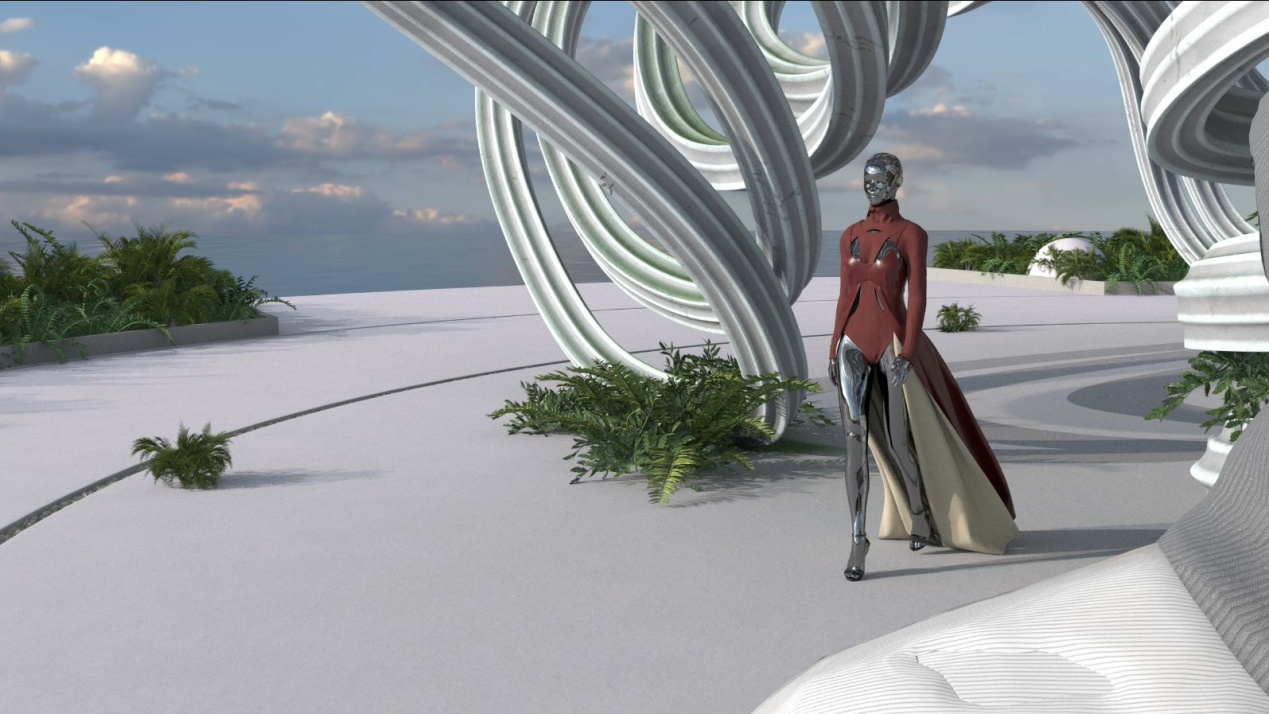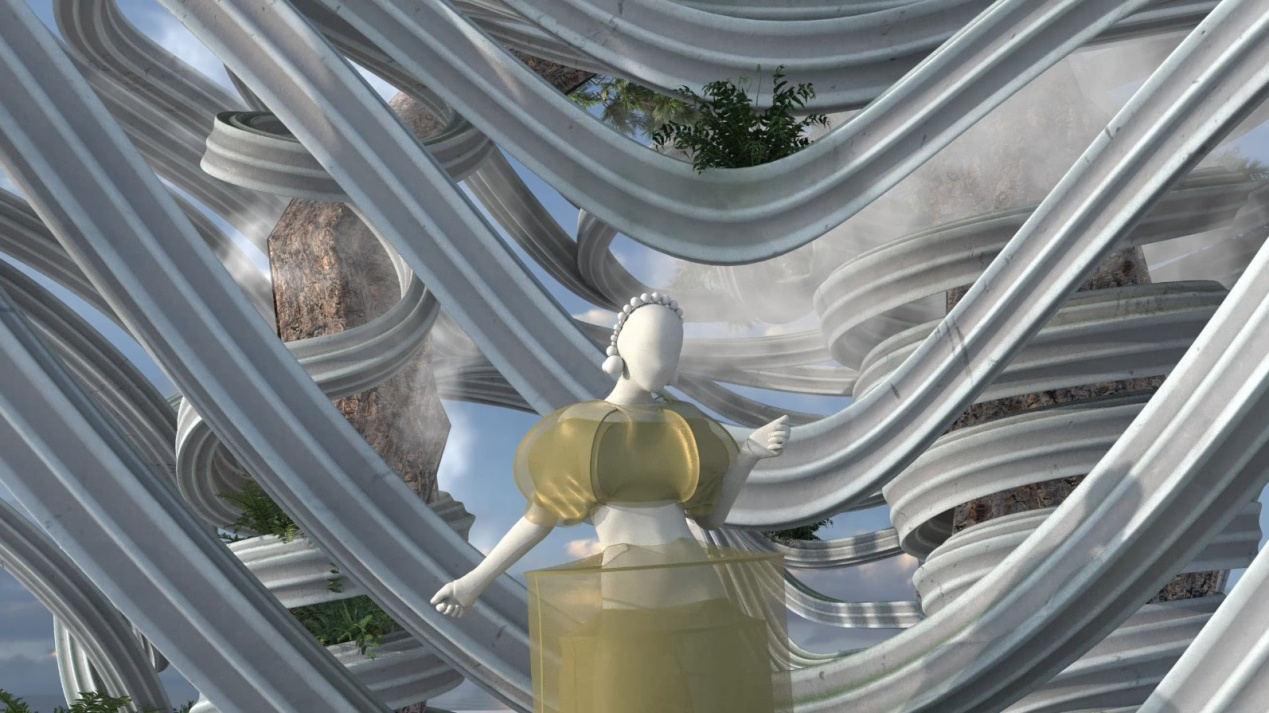 中国国际大学生时装周开幕秀——元•创东方3D虚拟时装秀的超现实主义秀场在科幻场景中开启