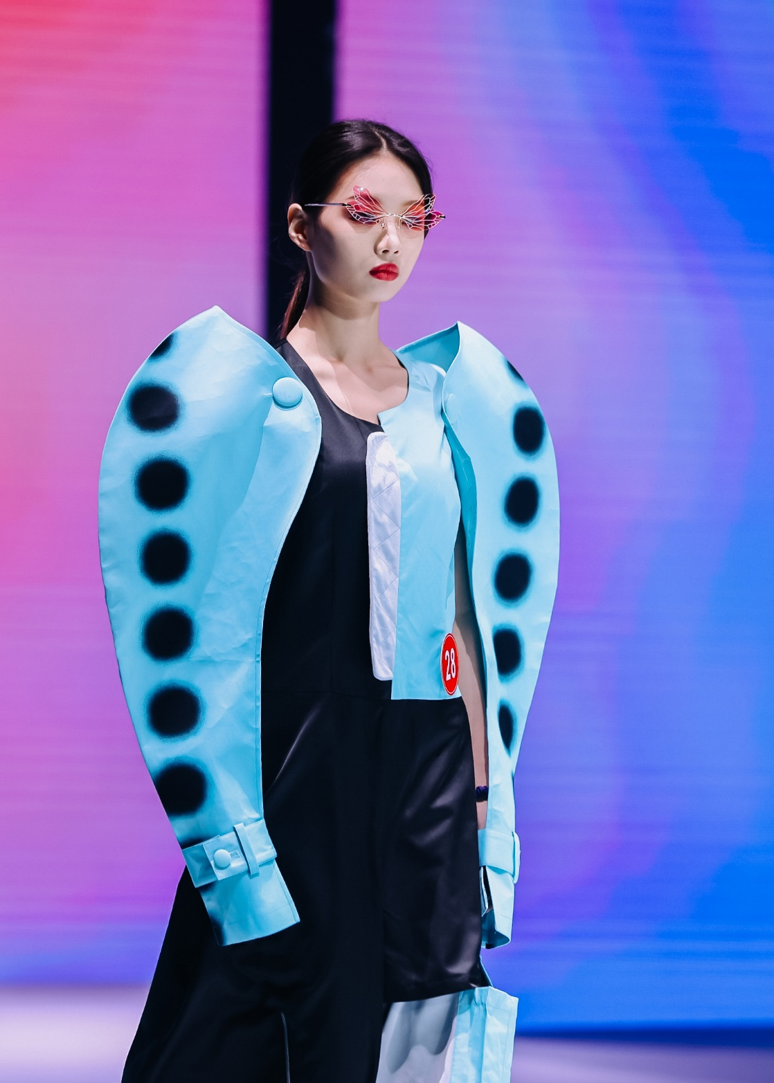 在此次的舞台上,闽江学院荣获2022中国国际大学生时装周人才培养成果奖,陈淑钰同学的作品《無限制》荣获“可持续时尚奖”。