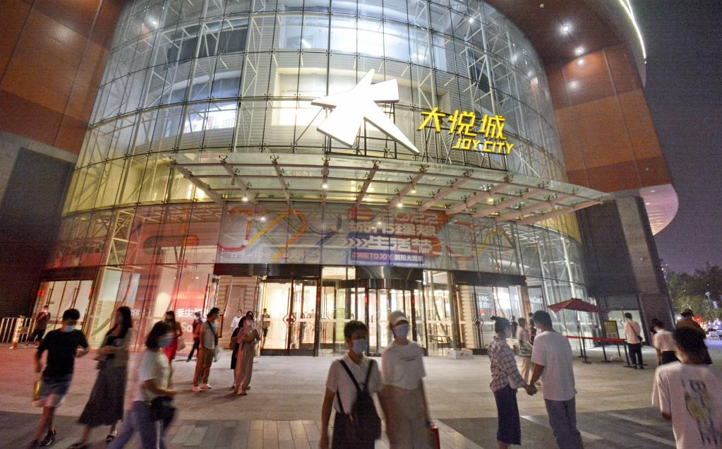 7月16日,市民在夜间营业的北京市朝阳区大悦城购物。