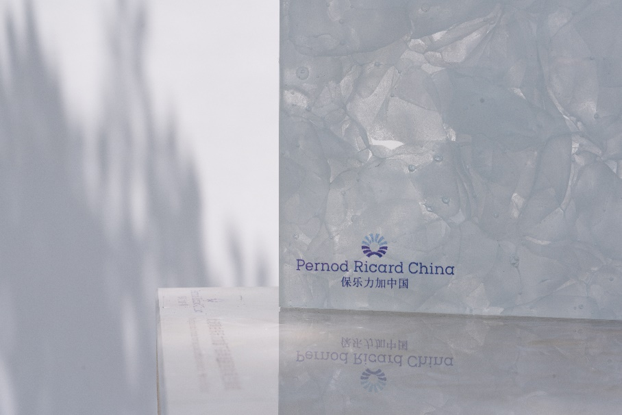 图2 保乐力加提供的空玻璃瓶经循环再生重制成板材铺设于空间部分地面