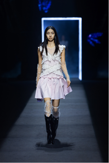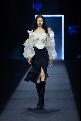 本次大秀以vision—《愿》为主题,表达对万物生命与希望的探讨,CHICCO MAO带着对未来的美好期望,以古典创新刺绣、星空烫钻、手工压褶等元素为载体,带来古典与超现实主义的一次灵感碰撞。