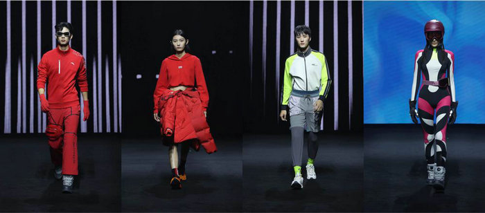 走秀首先以一段灵动的现代舞蹈开场,以短道速滑为灵感,生动演绎赛场与生活的灵活多变。随后,以2022北京冬奥中国红为灵感的中国冰雪系列,将冬季保暖服饰与户外机能风格相融合。不对称、叠穿、拼接等搭配方式突破运动与生活的边界。安踏携手清华大学举办的全球运动装备创新设计大赛获奖作品在大秀中惊艳亮相,为我们描绘出运动装备的未来科技感,传递出Z世代独立、自信的运动态度。北京冬奥会期间,以中国画泼墨感为设计灵感的中国冰壶国家队比赛服让人印象深刻,秀场也展示了中国冰壶国家队同款外套,泼墨渐变处的金边祥云纹案、提高腰线的修身设计,让其一亮相就成为全场焦点。