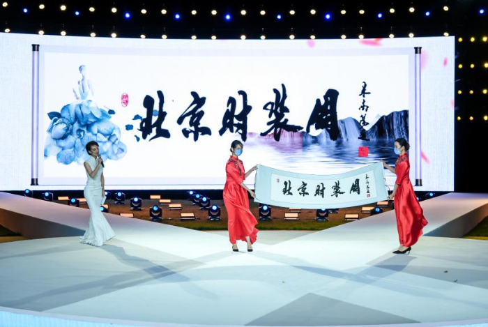 随后的闭幕盛典中,以数字化视频的方式呈现了著名书法家米南阳为“北京时装周”挥毫泼墨的题字片段,并由礼仪现场铺陈卷轴展示。米南阳先生的题字卷轴,寓意了北京时装周融合传统与当代,独树一帜的文化特质。
