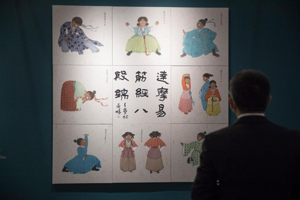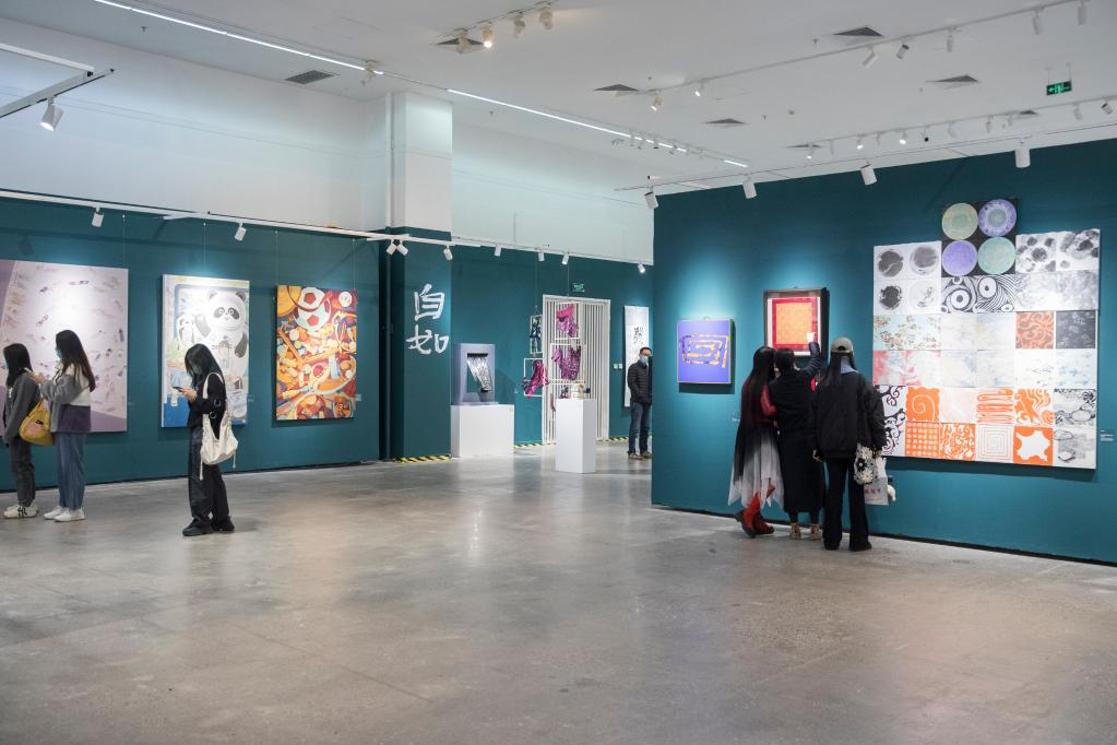 当日,律动古今——时尚运动主题美术作品展在北京服装学院开幕,展出由百位师生创作的近两百件作品。展览聚焦中华民族优秀的体育文化和当代国人的时尚生活方式,内容共分为“动静”“古今”“自如”三大版块,涵盖中国画、油画、雕塑、染织等多种类型。新华社记者 郭昱 摄