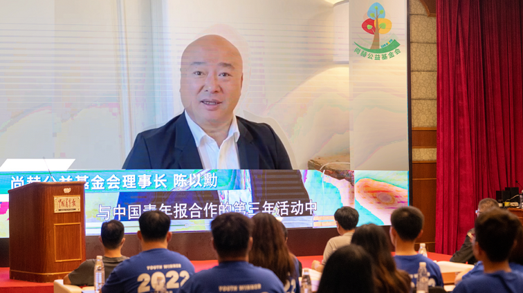 尚赫公益基金会理事长陈以勳在“校媒记者训练营”活动中与学子们在线交流