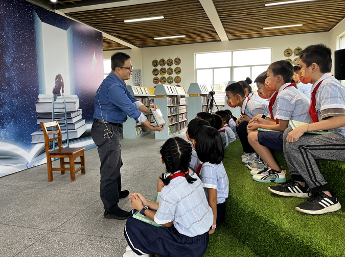 2022年9月的开学季,浙江省衢州市江山市长台尚赫孙美芳小学的同学们在图书室迎来了一位“神秘大咖”——一位会讲中国神话故事的新“老师”,历史专栏作家、著名上海读书期刊《上海书评》主理人、建投读书会策划人黄晓峰。在充满墨香的尚赫图书室里,“夸父逐日”“开天辟地”等励志神话故事让同学们听得津津有味,开启了一场中国传统文化探秘之旅。