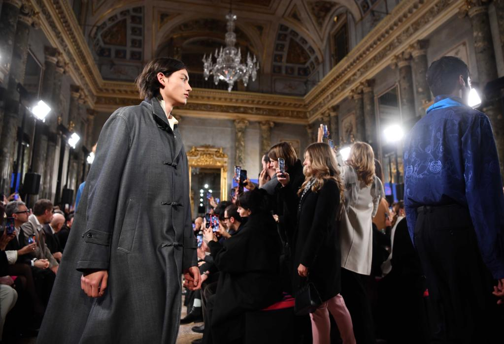 1月14日,模特在意大利米兰男装周上展示上海滩品牌时装。