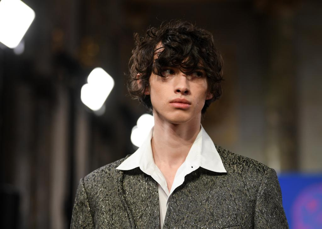 1月14日,一名模特在意大利米兰男装周上展示上海滩品牌时装。