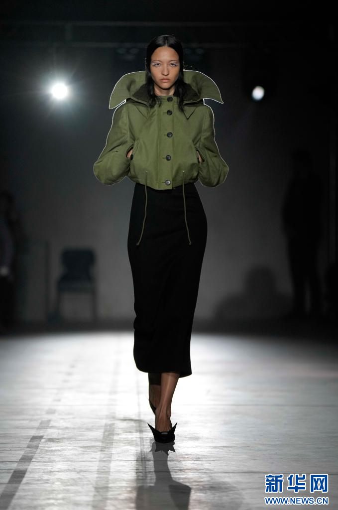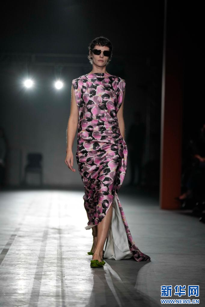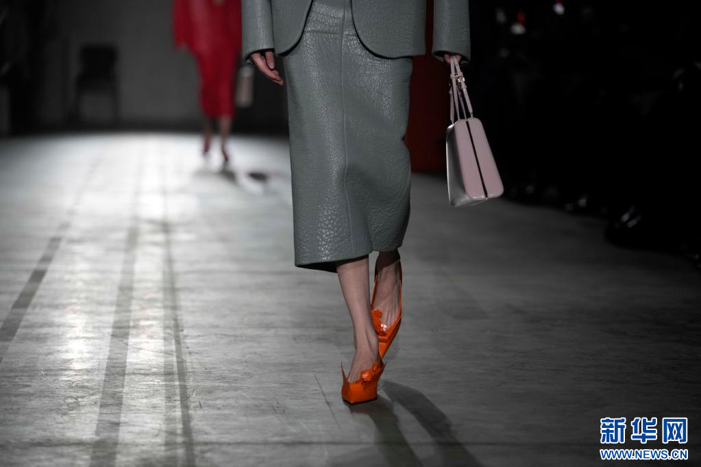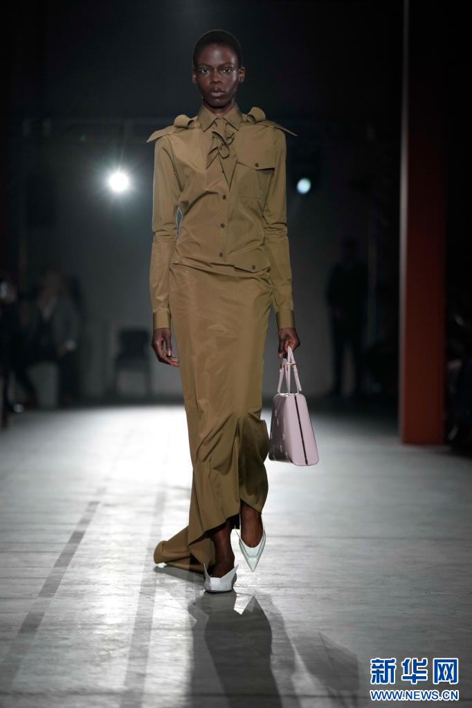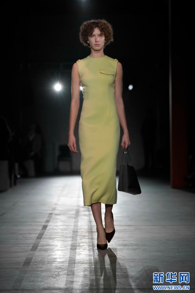2月23日,模特在意大利米兰时装周上展示普拉达品牌新款时装。