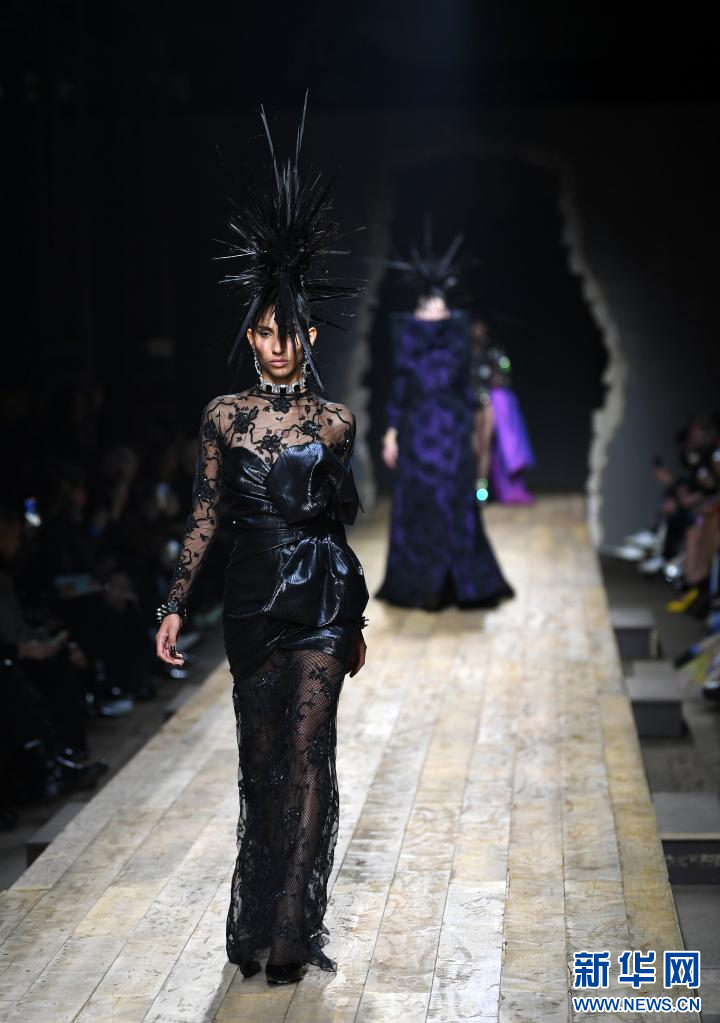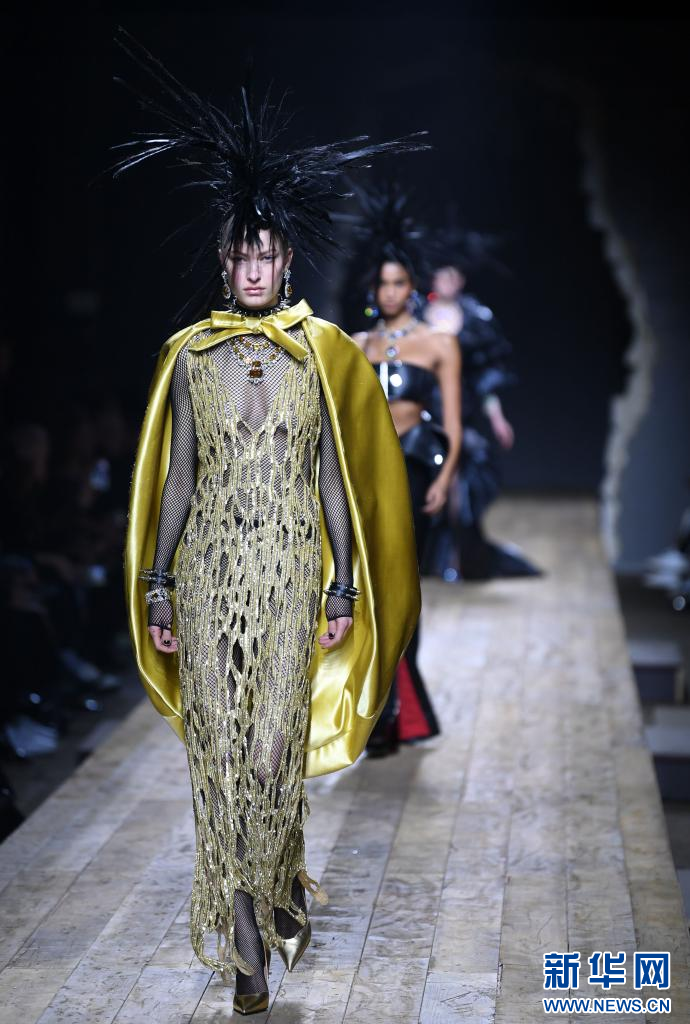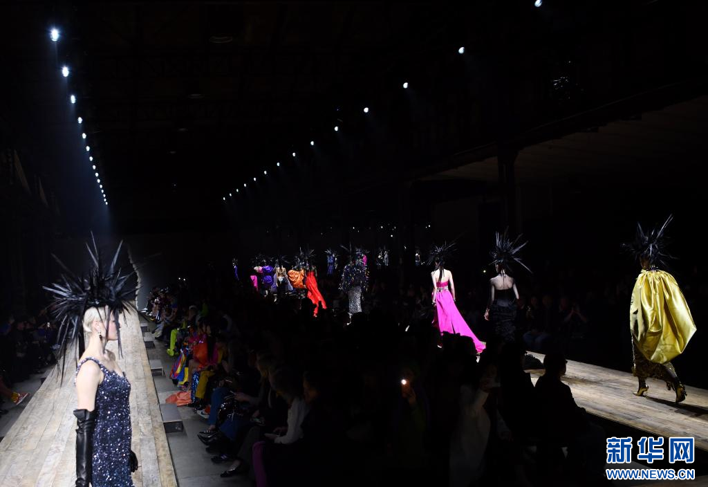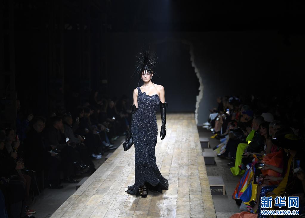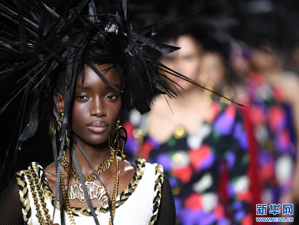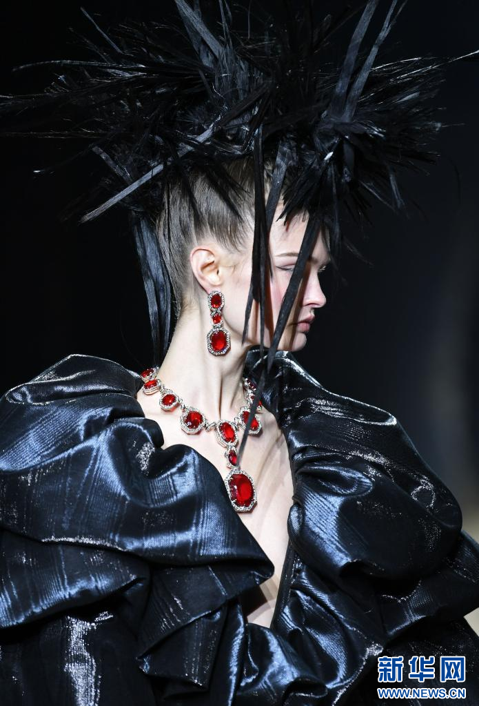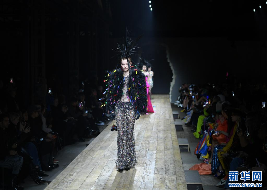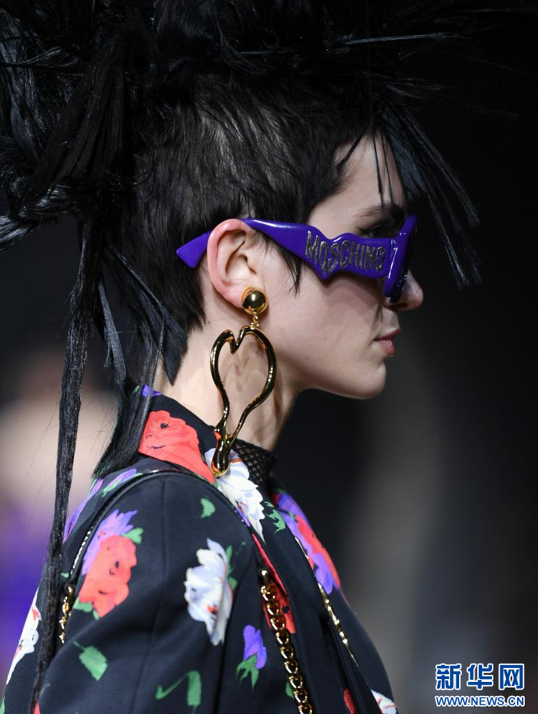 2月23日,模特在意大利米兰时装周上展示Moschino品牌新款时装。
