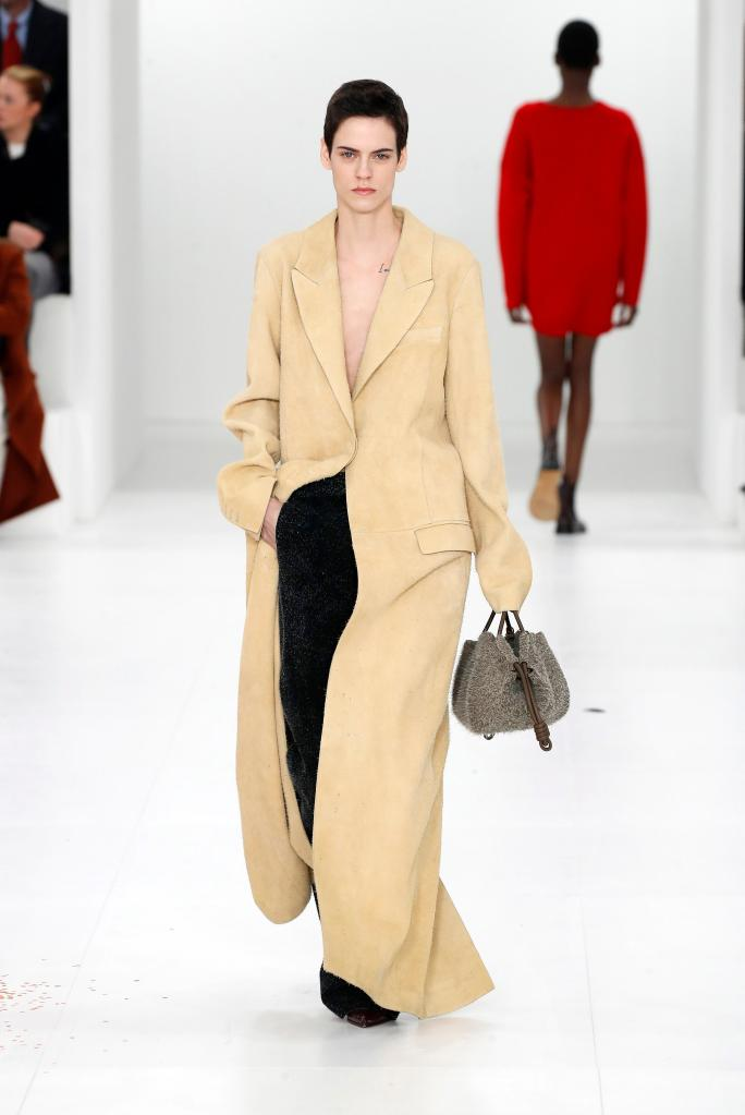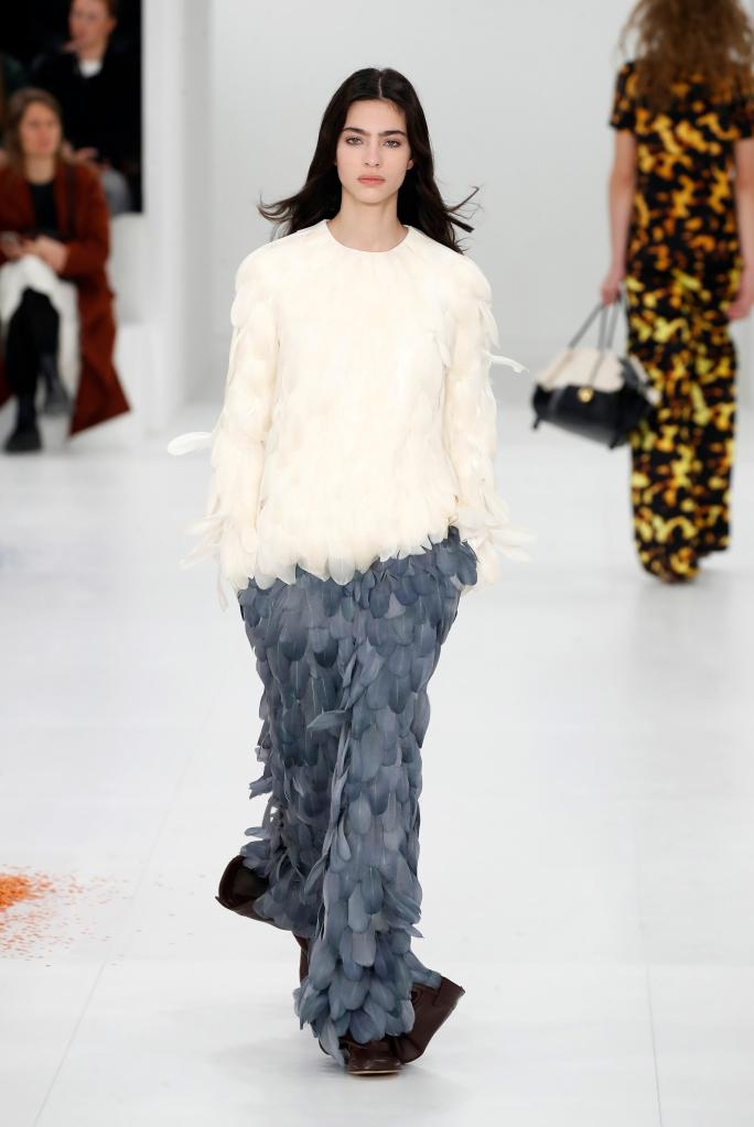 3月3日,模特在法国巴黎时装周上展示罗意威(Loewe)品牌2023/2024秋冬新品成衣。