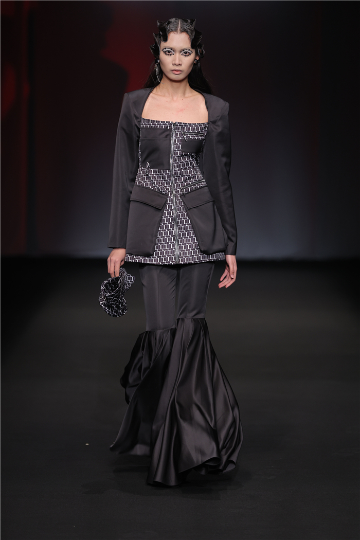 西装、夹克、长裙,一眼就会被廓形感、不规则设计以及精妙的剪裁所吸引,充分彰显了QIIIANNNL独一无二又多元的设计风格和设计师丰富的内心世界——独立、自信、强大。