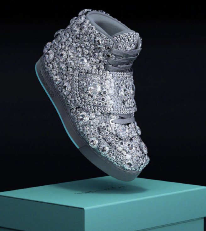 奢侈珠宝品牌Tiffany日前推出收藏级球鞋the Tiffany & Co.Facet,布满17000颗合计1837克拉的闪钻,由Tiffany工匠手工镶嵌制成,以致敬品牌的钻石文化遗产。该鞋款将对售价严格保密,仅通过咨询报价。