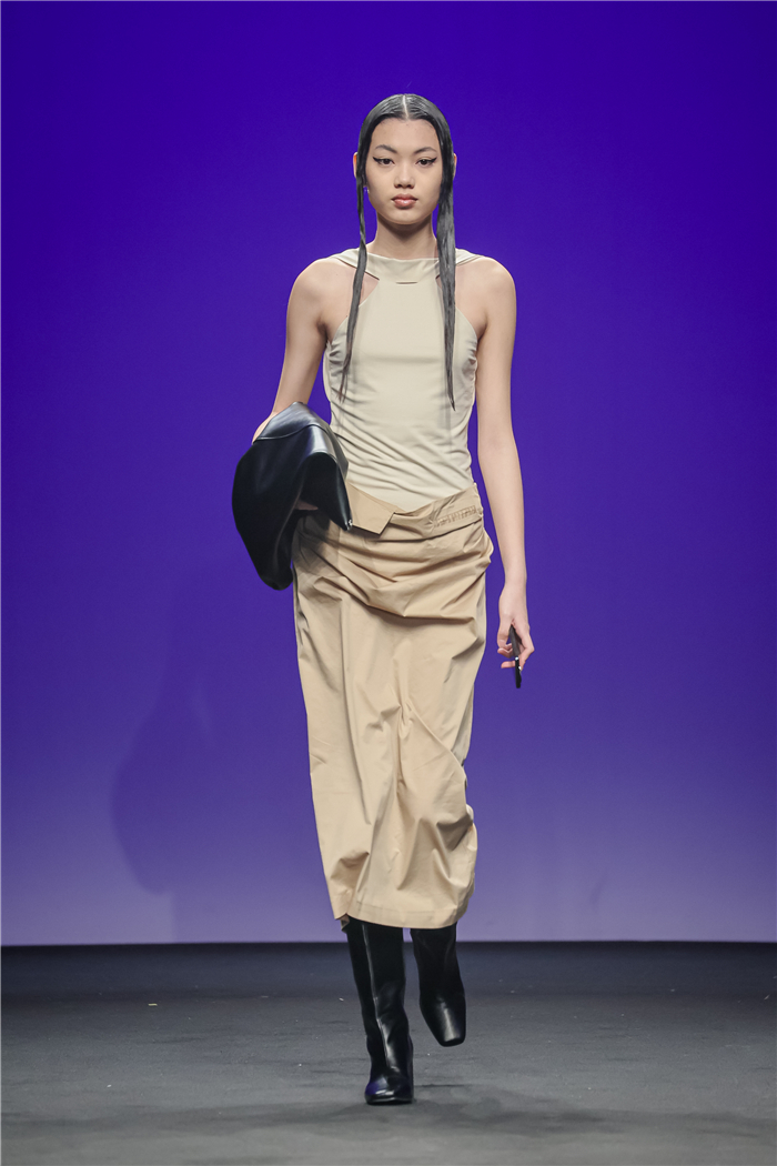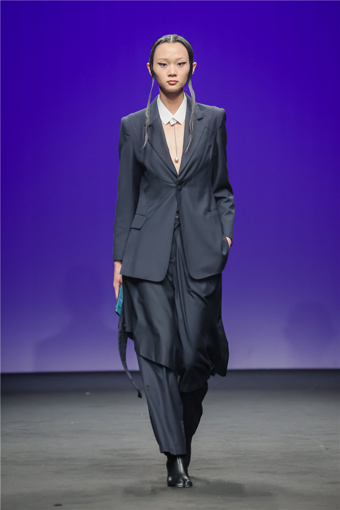 秀场上,蓝染品牌一半又蓝的创始人兼设计师陈杨,设计师品牌Jill Chiu创始人兼总监焦丽贤,DEMAGEDOT/O23653品牌设计师熊慧颖,非线叙事 FEI|XIN NARRATIVE品牌的创始人刘雅馨,独立设计师品牌斯夏CAIRA主理人兼设计师秦朗,NILDET创始人兼设计总监林晏德,独立设计师品牌ohayouki早安琦、独立设计师品牌孵化平台Geek Wonderland主理人万文琦,HAO'S HOUSE 主理人 & 陕西大剧院服装设计师郝昱铭,YANGXING私人定制工作室主理人兼设计师杨星,EYMOOD品牌设计师、武汉设计工程学院专任教师朱磊,以衣唯人设计师徐嘉,CHENG CHENG主理人程澄,绫致时装BESTSELLER设计师王文晓,FIRESPIKE火钉主理人夏明伟, 津波创意设计 Ttsunami Wall 创始人兼设计师范晓琳,YIDI ZHANG主理人张一迪, YANQINGMA创始人兼设计师,游岛艺术主理人麻燕青,PUNCHLINE主理人、SENSE 执行造型薛鹏辉,XANBER TSUI创始人兼设计总监徐贤鹏, 绍兴墨晗文化设计有限公司设计师、FUMENGKE浮梦客 创始人兼设计师李华梦,江西服装学院教师、Chen. 1988设计师、Dong Yuan |studio品牌主理人王远东,樾徕艺术设计工作室首席设计师鲍怿文用最新设计作品演绎新锐设计师群体的新月初升。