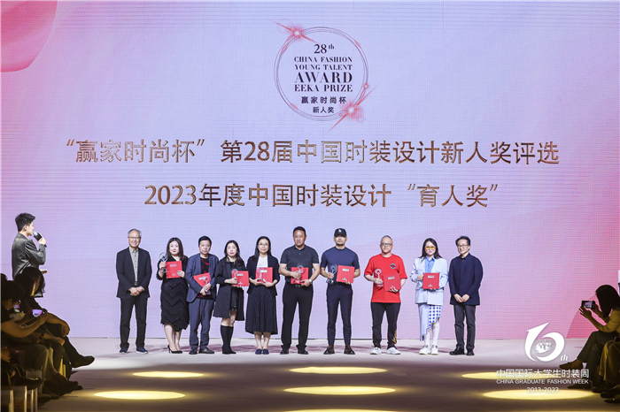 大连工业大学服装学院、江西服装学院、武汉纺织大学服装学院、广西艺术学院、天津工业大学艺术学院、中原工学院服装学院、中国美术学院设计艺术学院、长春工程学院、福州大学厦门工艺美术学院、浙江理工大学服装学院荣获2023年度中国时装设计“育人奖”;
