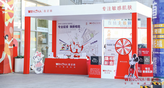 在525全国护肤日期间,薇诺娜与迪士尼的深度联动,为年轻消费者带来了从内到外的双重治愈。此外在迪士尼100周年嘉年华之际,薇诺娜也会开展线下快闪店的活动,实现线上销售与线下体验的双向转化。