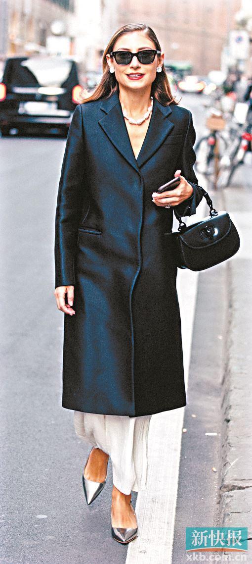 尖头鞋回潮,银色不会显得过于华丽,也更适合有气场或偏通勤装的正式单品,尤其是阔腿长裤,一定要够长够宽松,盖住脚面,只露出尖尖的鞋头,视觉上特别显腿长。