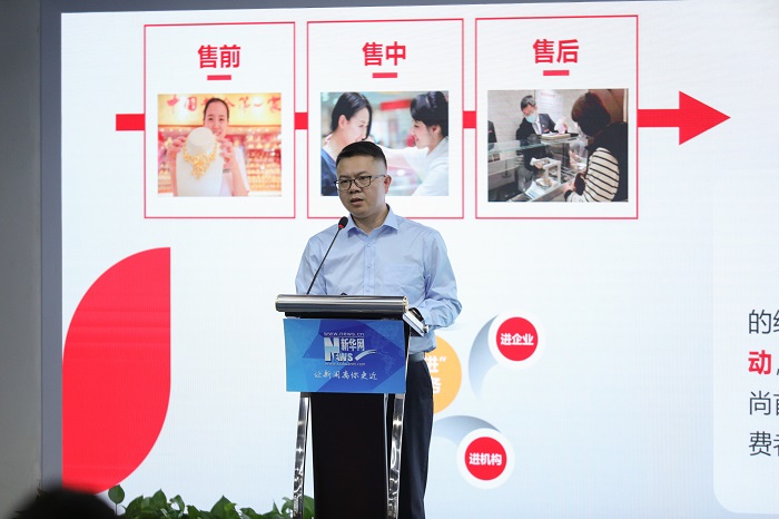 7月18日,2023珠宝产业创新发展座谈会暨新华网与中国珠宝玉石首饰行业协会框架合作签约仪式在京举行。会上,北京菜市口百货股份有限公司党委委员、副总经理宁才刚围绕“中国珠宝品牌的品牌价值构建策略与创新发展路径”发表主题演讲。他表示,品牌的发展实质上是一种在文化的沉积中不断创新的过程,将文化与黄金首饰相结合的品牌发展模式,是对中华优秀传统文化深度挖掘,将有效提升企业的文化内涵和竞争力。