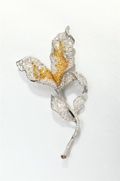 Jardin des moneta系列 黄色蓝宝石、钻石胸针