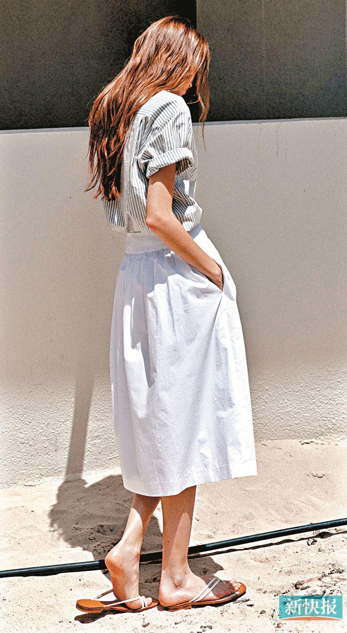 “白衬衫+高腰伞裙”这种上世纪50年代的经典组合同样不过时,且上紧下松的组合适合梨型身材。(记者 梁彧)