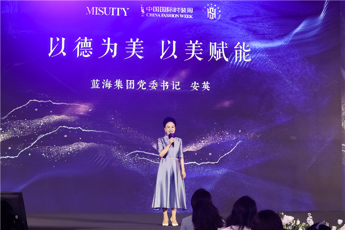 蓝海集团党委书记安英进行《以德为美,以美赋能》主题演讲,演绎了中国传统文化与时俱进的巨大潜能与无限生机。