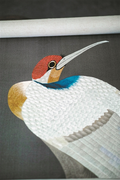 梁秀玲告诉记者,这类将广绣与绘画等其他艺术形式结合起来的做法现在颇受欢迎。毕竟并不是所有的客户,所有的场合都需要纯刺绣的作品,但很多时候,大家又希望在室内装饰里能体现一些传统文化元素,或者岭南风味。而如此这般将广绣转化为装饰手法的一种,就大大提升了广绣的适用范围,以及市场的接受度。