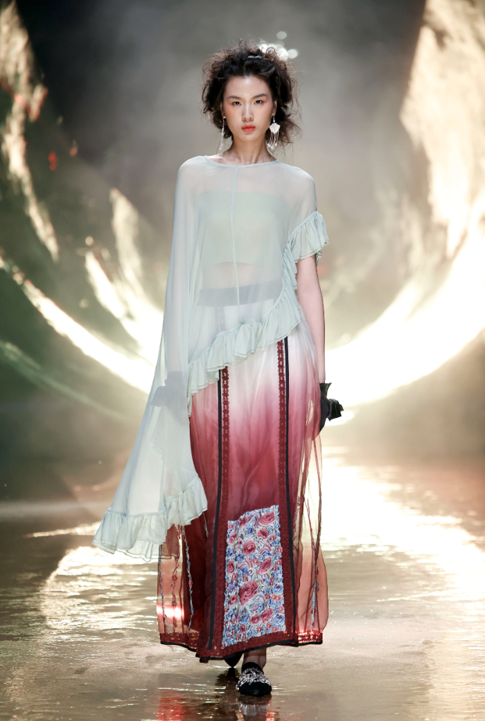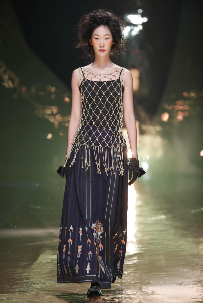9月10日,模特在北京举行的中国国际时装周(2024春夏系列)“生活在左·林栖时装发布”上展示设计师林栖设计的时装。pagebreak