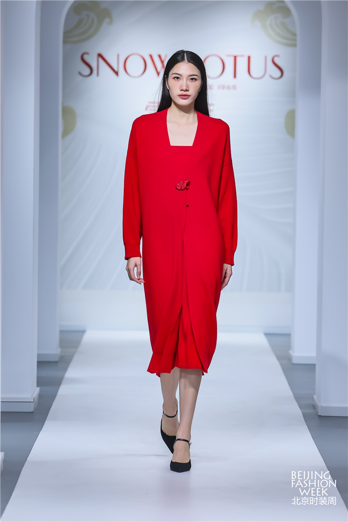 本场发布会共分3大主题系列,分别以代表色命名为“红色之贵”“原色之美”“古色之韵”,雪莲将中国传统色融入羊绒纱线,让东方之韵成为今秋风景。
