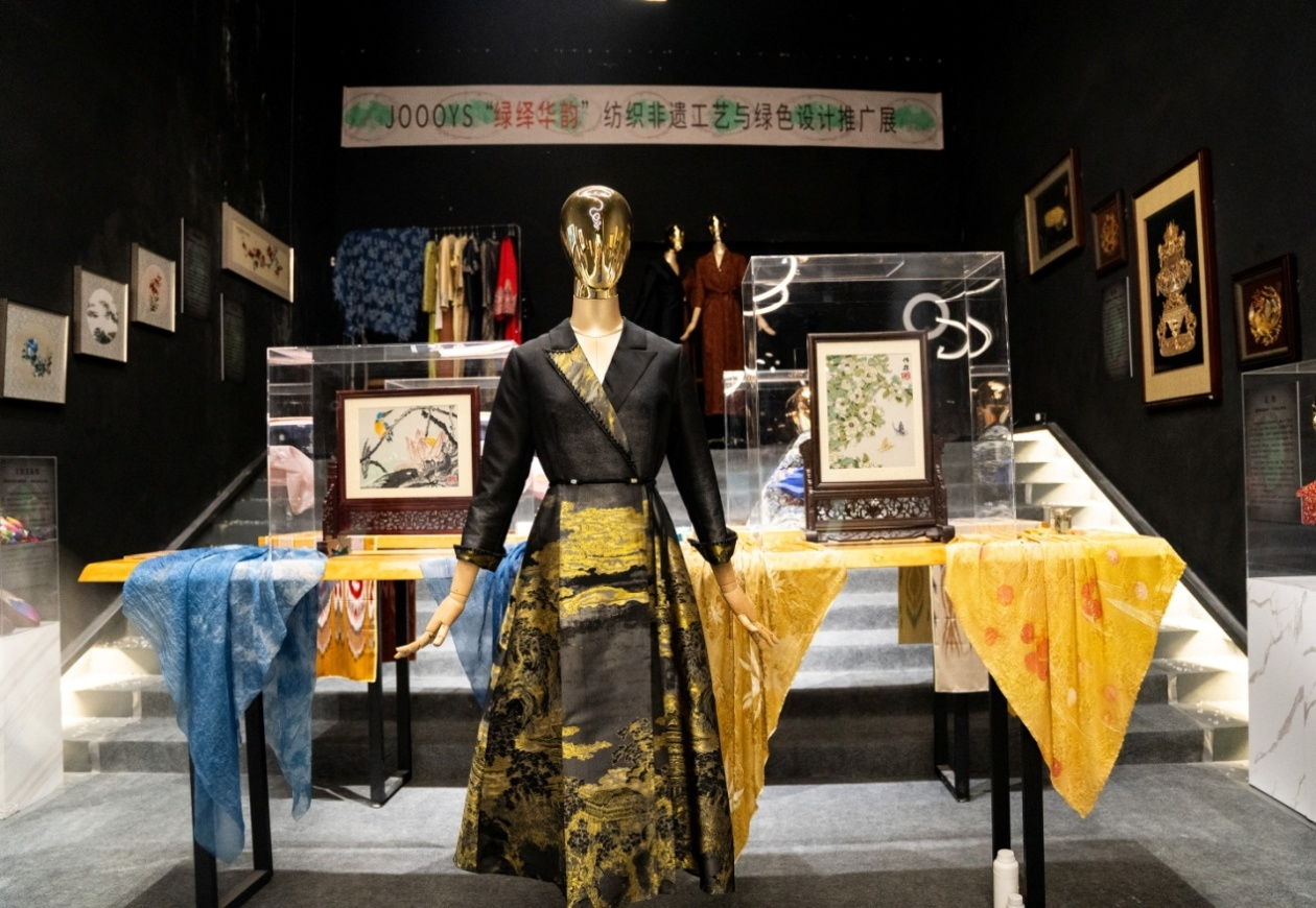 展览以沉浸式场景展陈的方式呈现了契合绿色设计理念的数十项中国国家级、海外国家级纺织类非物质文化遗产项目,包含粤绣(潮绣、珠绣)、苏绣、湘绣、缂丝、香云纱、宋锦、云锦、南通沈绣(仿真绣)、艾德莱斯绸、“五星出东方”丝绸文创产品、贵州老苗绣、西阵织(海外)等。其中,特别展出了中国工艺美术大师黄伟雄、李艳以及中国缂丝艺术大师吴文康的代表性作品,集中展示中国传统工艺的艺术高度。