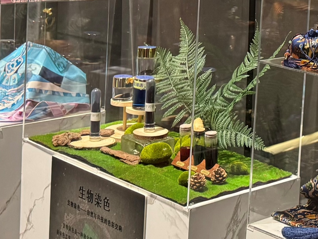 推广展还展示了传统植物染色及创新生物染色技术,特别引入了常州美胜生物的植物染料与植物蒸染技术,以及深圳道生生物的生物靛蓝染料技术,奥罗拉的双面16色定位数码印花技术,全面呈现非遗工艺与绿色科技融合的创新成果。