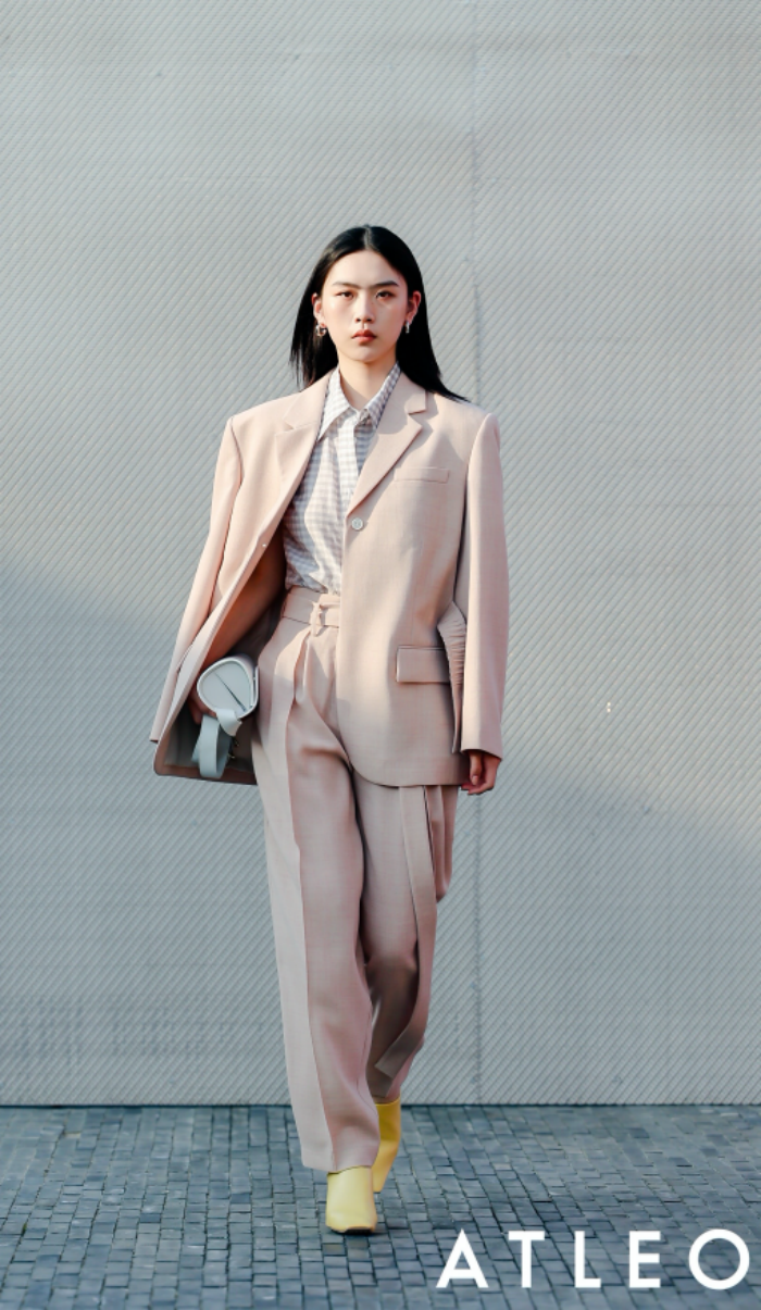 ATLEO 2024春夏成衣“原来”系列中,品牌创始人兼设计师李欧希望为当代女性找到自我与时尚的最佳距离,在自我审视中提供一种冷静的身份认同。这就犹如为原本模糊、隐隐感知,但无法确定的身份上一层釉,看到“原来”那个纯粹的自己,回归到不物化,不虚荣,自信而充满吸引力的当代独立女性的形象。对于女性而言,在彰显自我个性的基础上,她们既要时髦利落,又要兼备品质和品味,喜欢简约的经典形象,却不想沉闷无聊,希望低调审慎,又不想古板保守,苦于时装成衣和着装态度之间的多重矛盾,急于寻求当代都市女性成衣解决方案,这与品牌设计师李欧一直以来探索的时装意义不谋而合。