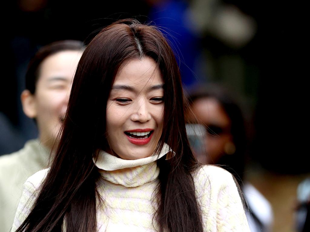9月18日,韩国演员全智贤参加英国伦敦春夏时装周博柏利(Burberry)品牌时装秀。