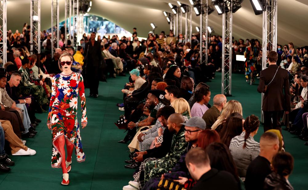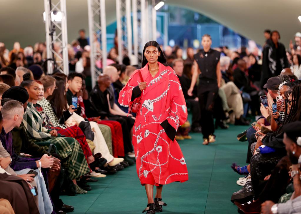 9月18日,模特在英国伦敦春夏时装周上展示博柏利(Burberry)品牌时装。
