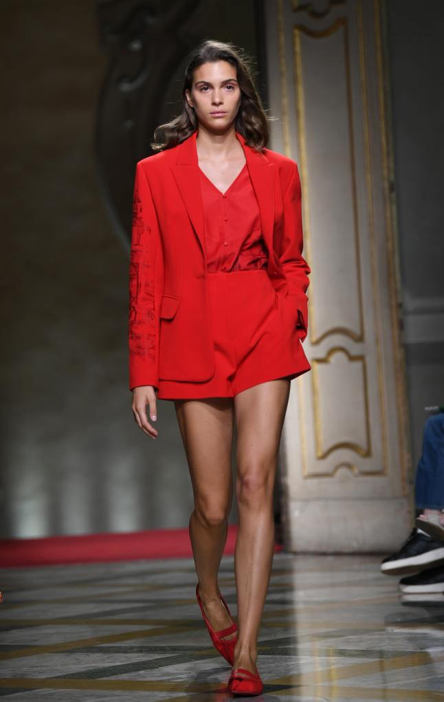 新华社意大利米兰9月24日电(记者周啸天 陈占杰)《中国苗·艺术展》24日在意大利米兰时装周举行。44件含有贵州苗绣元素的设计时装轮番登上舞台,以精美的纹样图案与细腻的手工工艺,展现了贵州苗绣的艺术风格,成为米兰时装周的一个亮点。