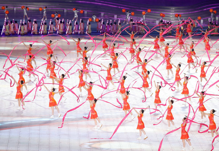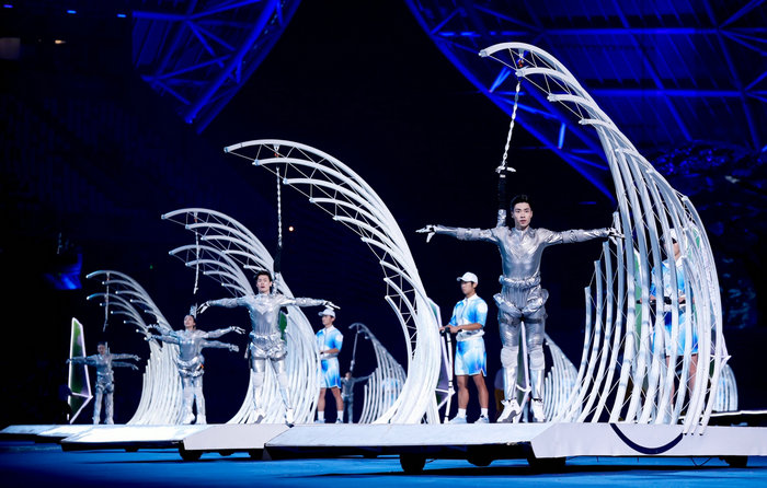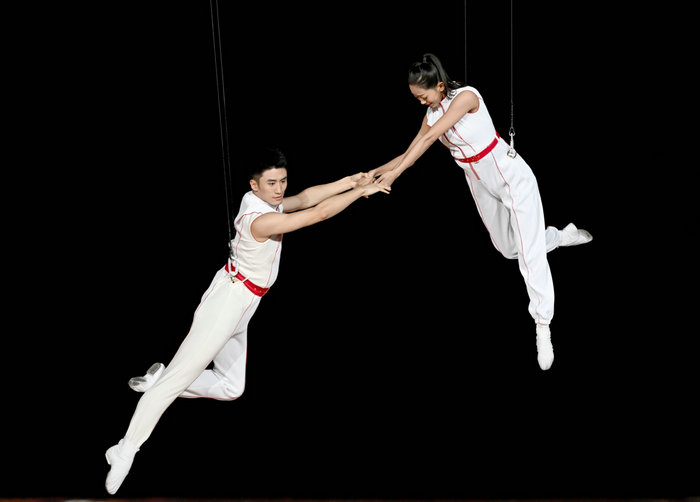 9月23日,身着丁洁设计的服装等演员在开幕式上表演。