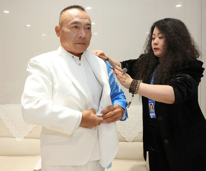染晨曦,沐夜色,与星辰为伴。半年来,丁洁与时间赛跑,一千次振翅只为精彩瞬间。开幕式上,映入眼帘的“开幕仪式/会旗执旗手”服装,展现出本次亚运会所特有的东方意蕴:服装上“水晕光圈”的设计,搭配3D打印的“如意吉祥扣”,将中式理念与未来科技感相融合。