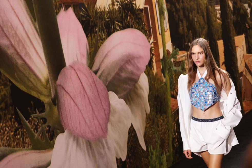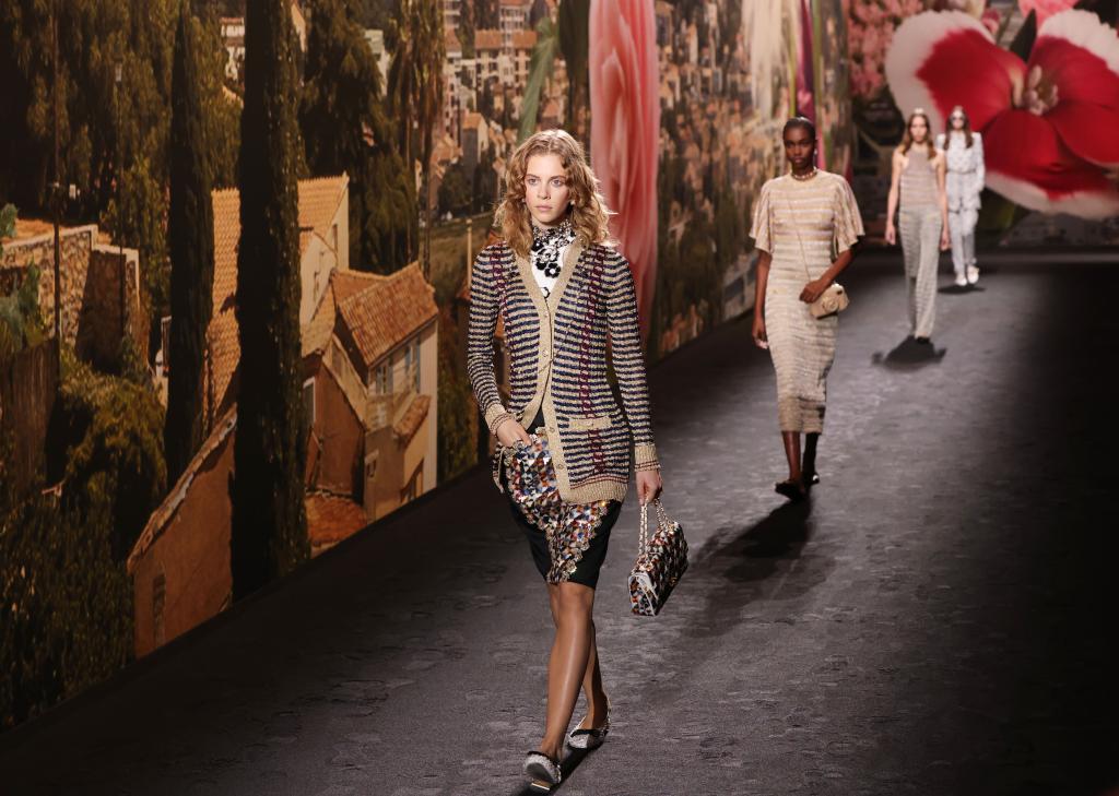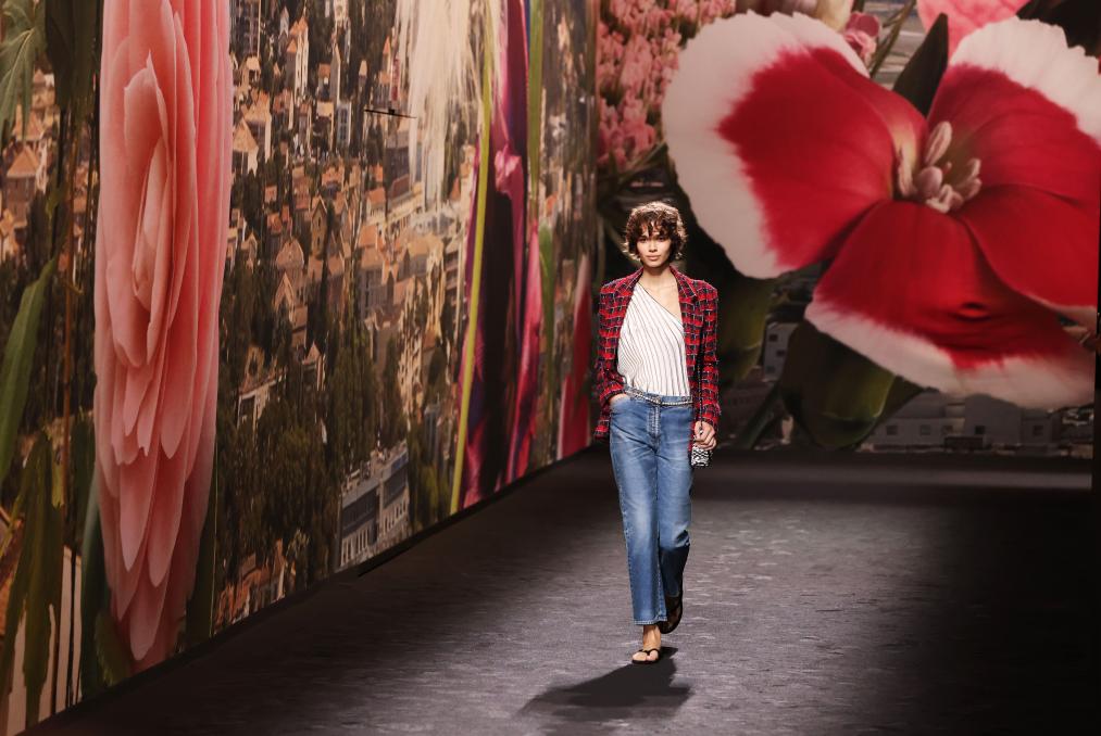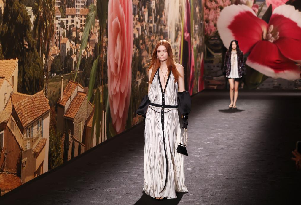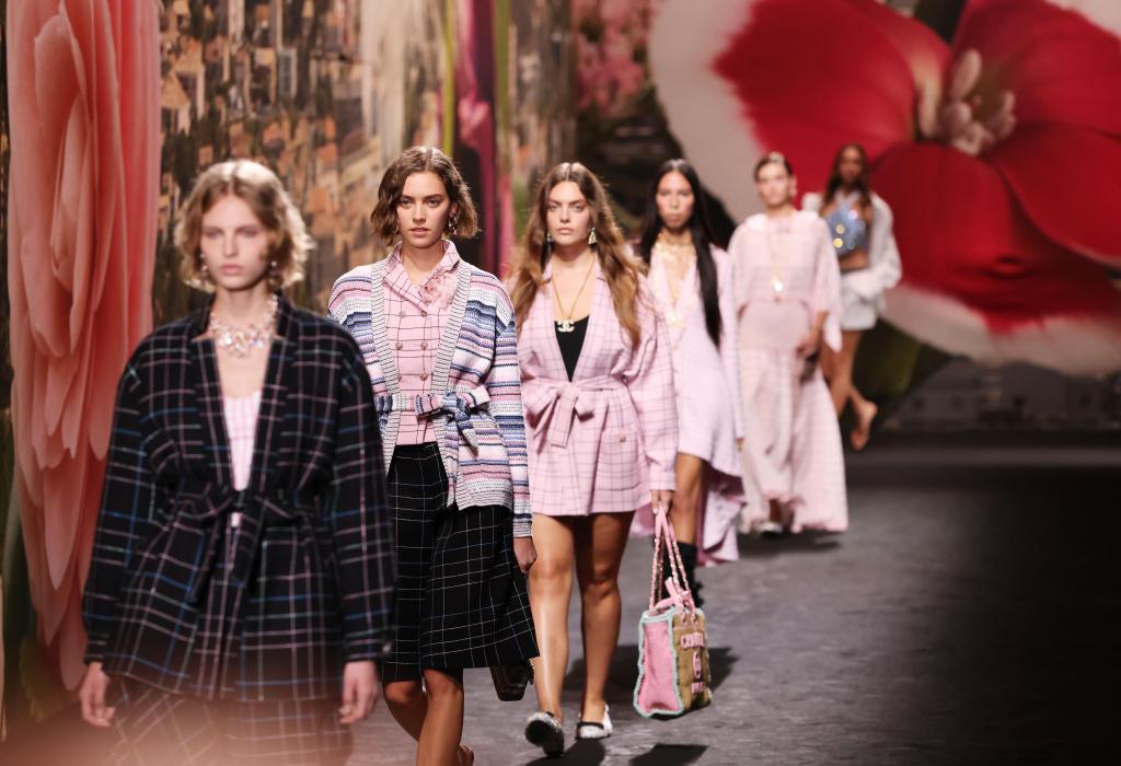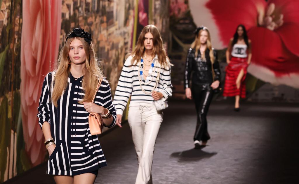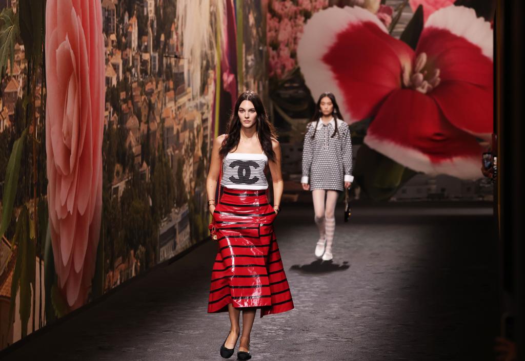 10月3日,模特在法国巴黎时装周上展示香奈儿品牌2024春夏新品时装。