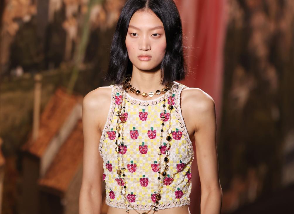 10月3日,模特刘雯在法国巴黎时装周上展示香奈儿品牌2024春夏新品时装。