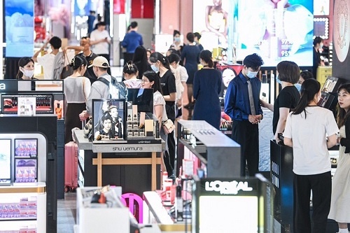 游客在海控全球精品免税城购物的场景。(图片企业提供)