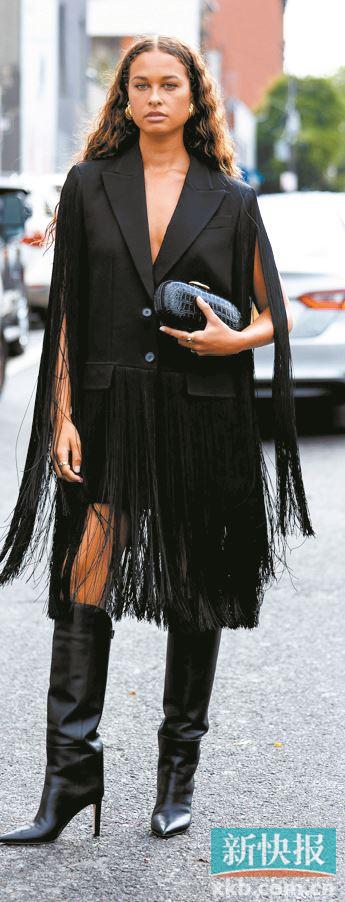 除了常见的条状,流苏元素的呈现还可以是穗子或缠绕,延续春夏季编织风潮的前提,秋冬季流苏与编织结合,编织形成的镂空和花纹图案让服装质感更鲜明,并与流苏下摆间形成纹理差异,增加更多时尚感。(记者 梁彧)