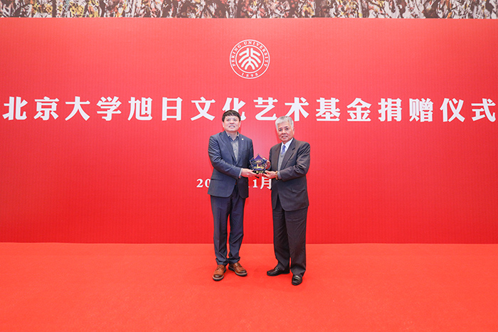 11月13日,北京大学旭日文化艺术基金捐赠仪式暨北京大学百周年纪念讲堂“旭日厅”揭牌仪式举行。旭日慈善基金代表、香港旭日集团有限公司副董事长兼总经理、真维斯国际(香港)有限公司董事长杨勋,真维斯国际(香港)有限公司董事兼副总经理刘伟文及真维斯代表一行,与北京大学党委常委、副校长董志勇出席并共同见证揭幕仪式。