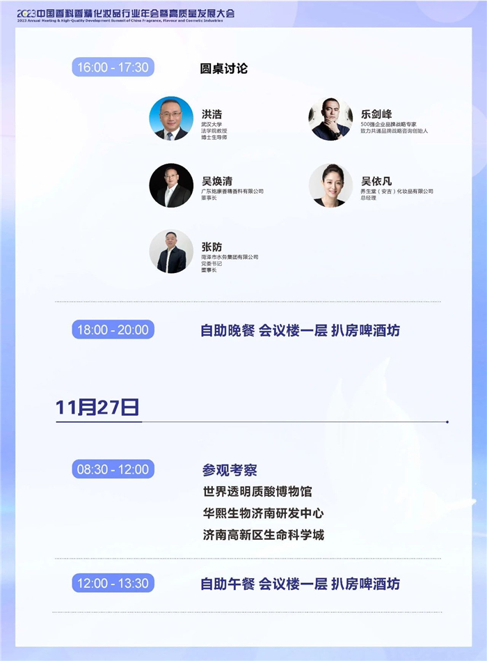 11月24日至27日,2023中国香料香精化妆品行业年会暨高质量发展大会即将在济南召开。群贤毕至,少长咸集,凝聚智慧,共谋发展。