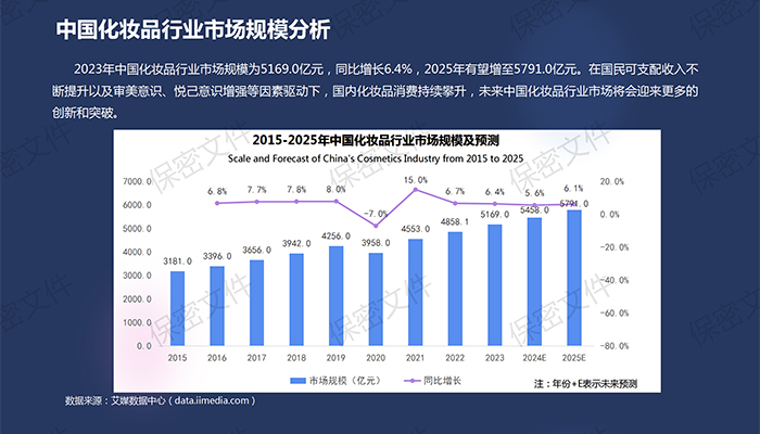 报告显示,2023年中国化妆品行业市场规模约为5169.0亿元,同比增长6.4%,2025年有望增至5791.0亿元。在国民可支配收入不断提升以及审美意识、悦己意识增强等因素驱动下,国内化妆品消费持续攀升,未来中国化妆品行业市场将会迎来更多的创新和突破。