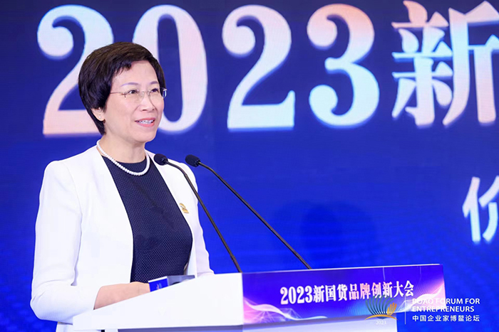 工业和信息化部消费品工业司原司长高延敏发表致辞,他表示经济发展需要更多的优秀新国货品牌来支撑,新国货品牌让新国货在消费经济发展中发挥更大、更重要的作用。他认为新国货品牌的发展潜力在于是否能提供创新的产品,是否能找到差异化的定位,新国货品牌只有积淀深厚底蕴才能让消费者耳熟能详。