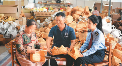 现在,平山镇共有17家竹木芒编出口企业,竹木芒编产业已成为带动当地经济发展和群众脱贫致富的支柱产业,产品远销英国、加拿大、韩国等国家。国家税务总局平南县税务局加大对这一特色产业的扶持力度,优化服务举措,精准落实税惠红利,助推非遗与旅游深度融合发展。