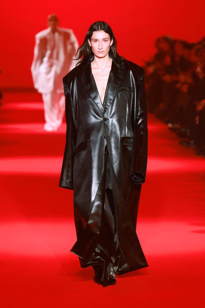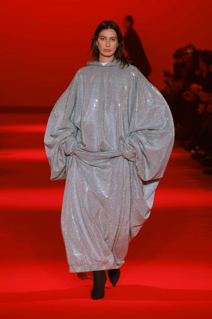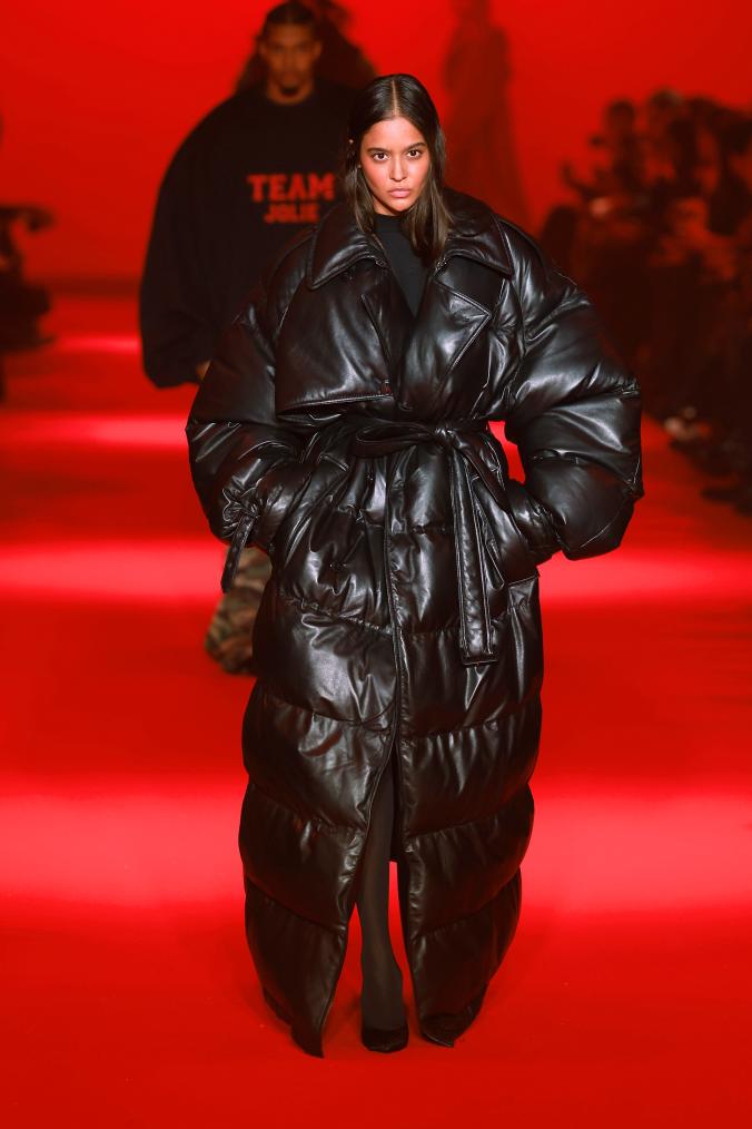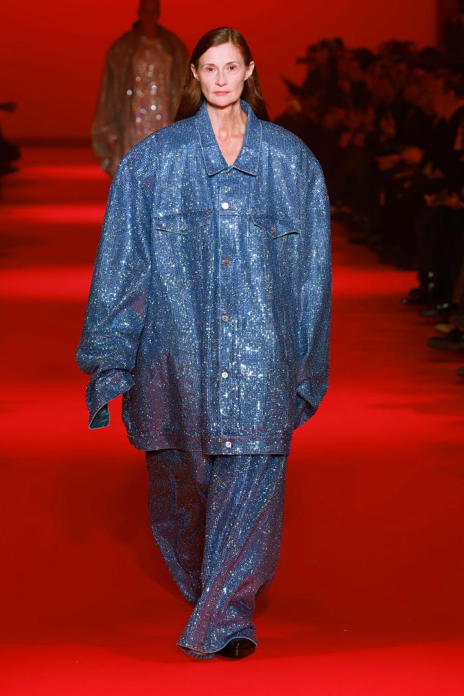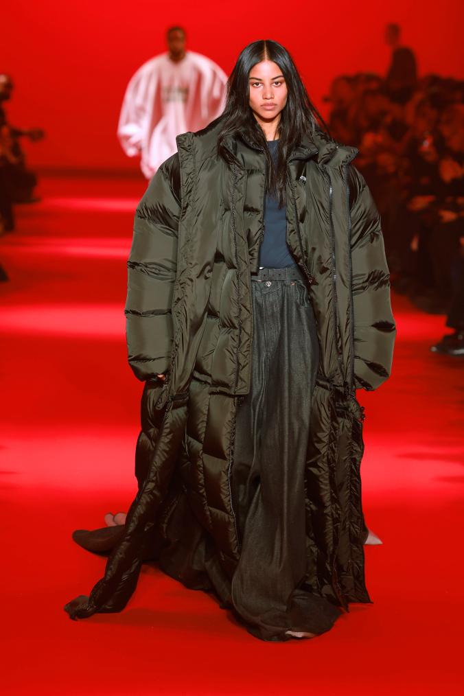 3月1日,模特在法国巴黎时装周上展示Vetements品牌2024/2025秋冬新品成衣。