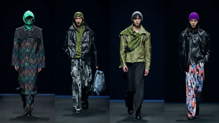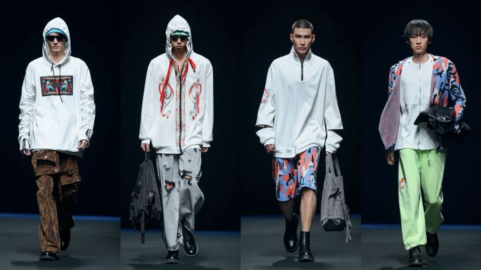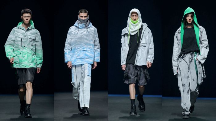 据悉,《文脉承续·中国敦煌》从真维斯近期官宣发售的“敦煌博物馆联名系列”中进行衍生创作,设计师黄刚将九色鹿、瑞兽、代表纹样等敦煌文化元素进一步运用到设计中,结合未来科幻的色彩与剪裁,加以高科技面料进行时尚演绎,一阵具有中国特色的“未来主义”时尚风潮向秀场观众袭来。